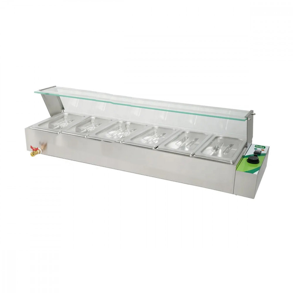 سخان طعام باين ماري 6 صحون ربعالابعاد 111.5*29.5*31.5 سمسقف زجاجيماسورة تصريف من النحاسمفتاح تحكم بالحرارةستانليس ستيل